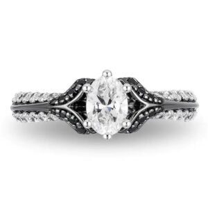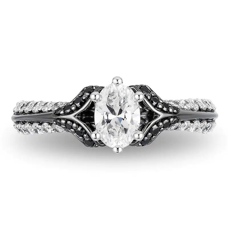 1CT.T.W.OvalDiamondEngagementRingin14KWhiteGoldwithBlackRhodium