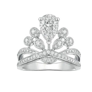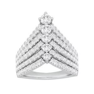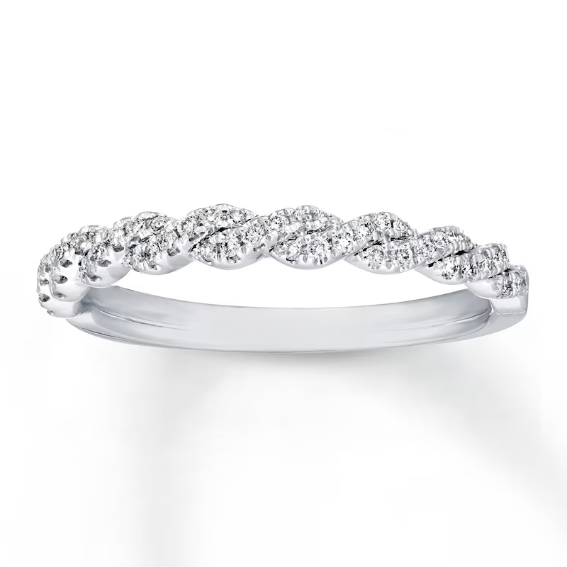 A gorgeous symbol of your love, this sparkling bridal; features an engagement ring with a romantic heart-shaped diamond haloed by glimmering round diamonds. The band and matching wedding ring are adorned with twists of round diamonds, bringing the total weight of the set to 7/8 carat. The ring is styled in 14K white gold.
