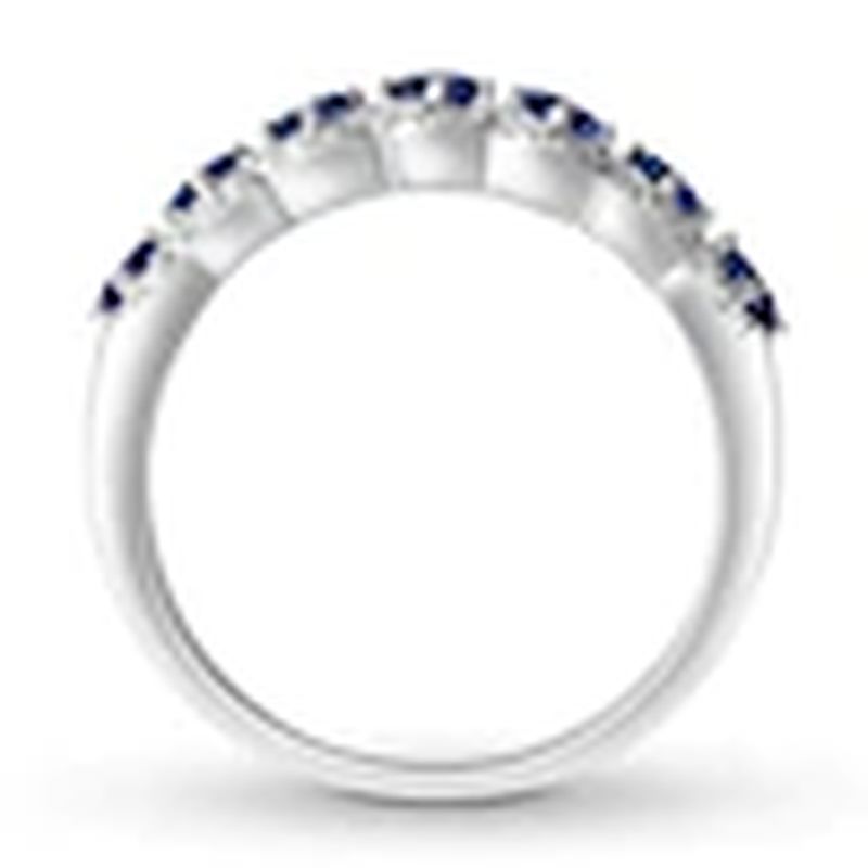 Sapphire Anniversary Band 1/4 ct tw Diamonds 10K White Gold