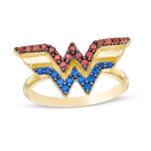 Garnet, Blue Sapphire and 1/15 CT. T.W. Diamond Symbol Ring in Sterling Silver