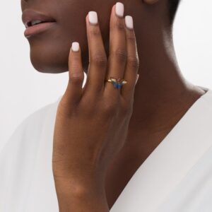 Multi-Gemstone and 1/5 CT. T.W. Diamond Ring in Sterling Silver and 10K Gold