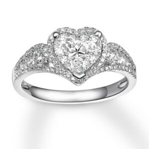 A stunning diamond dances with every move at the center of this gorgeous women’s heart necklace from the collection. Additional round diamonds frame the heart-shaped pendant, giving the necklace a total diamond weight of 1/3 carat. The 10K white gold pendant sways from a 19-inch curb chain and secures with a lobster clasp.